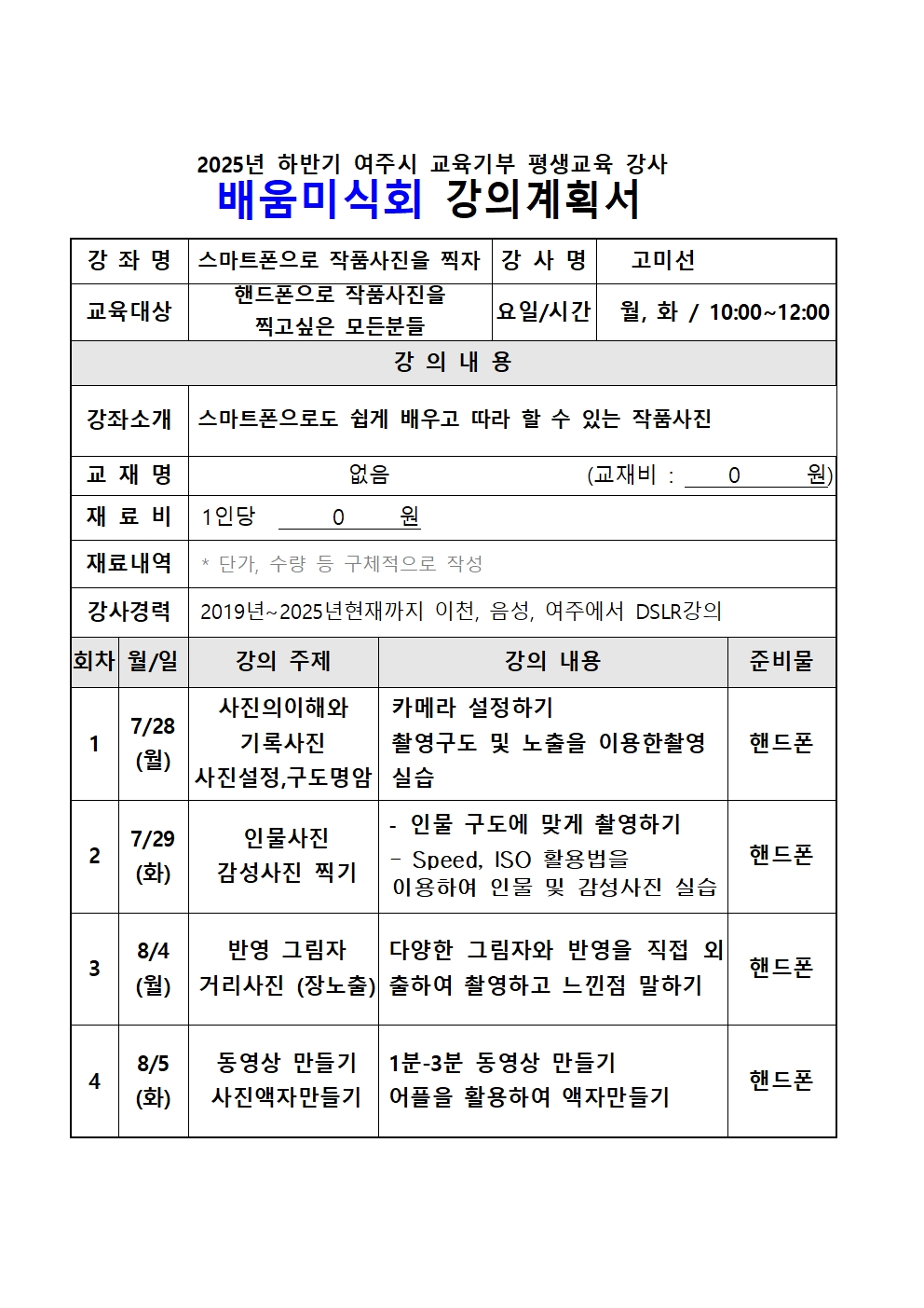 배움미식회 2025년 하반기 배움미식회 스마트폰으로 작품사진을 찍자