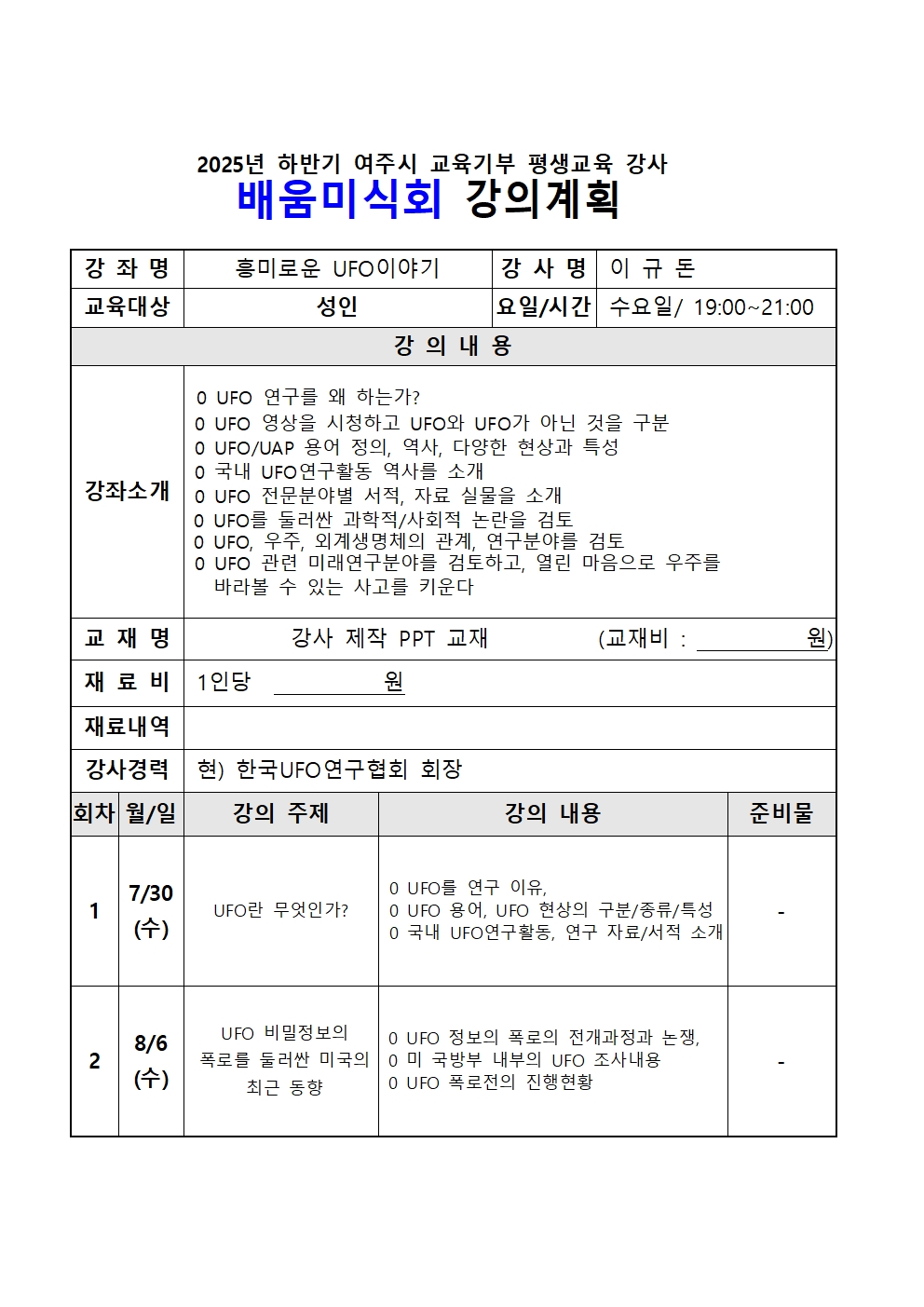 배움미식회 2025년 하반기 배움미식회 흥미로운 UFO이야기