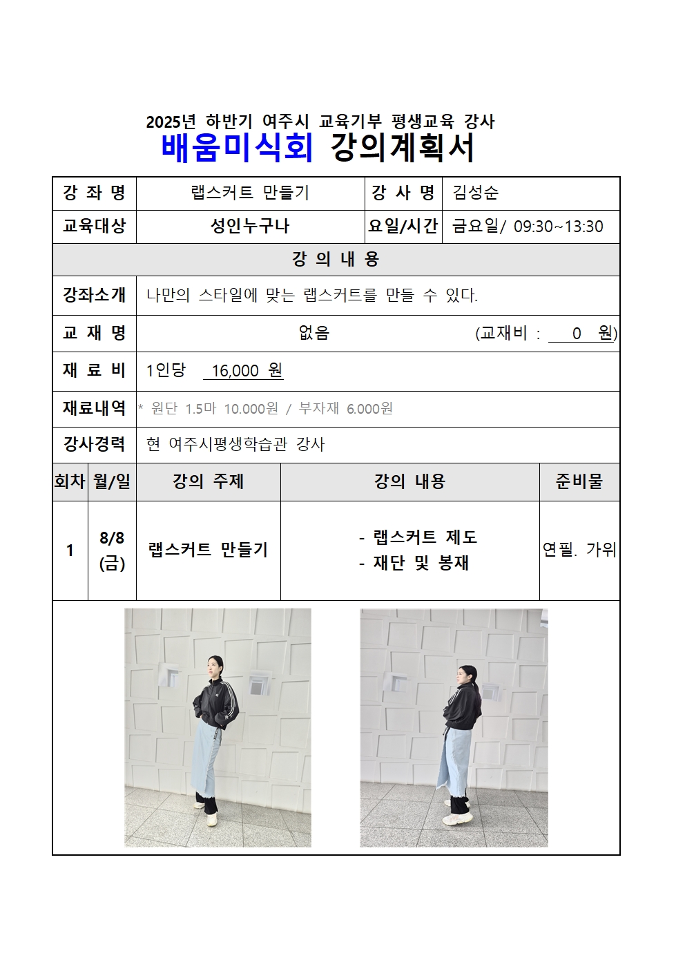 배움미식회 2025년 하반기 배움미식회 랩스커트 만들기