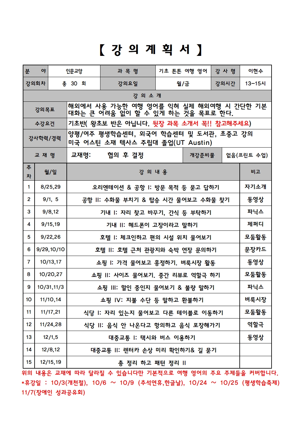 | 교육시간 | 월,금 13:00 ~ 15:00 |