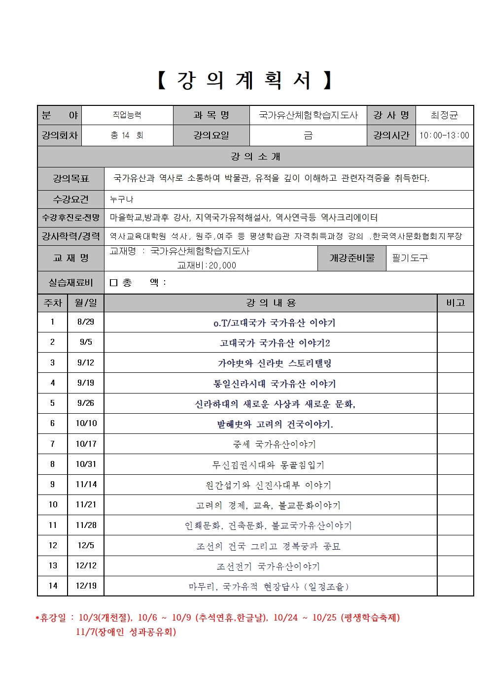 정규프로그램 2025년 하반기 정규프로그램 국가유산체험학습지도사