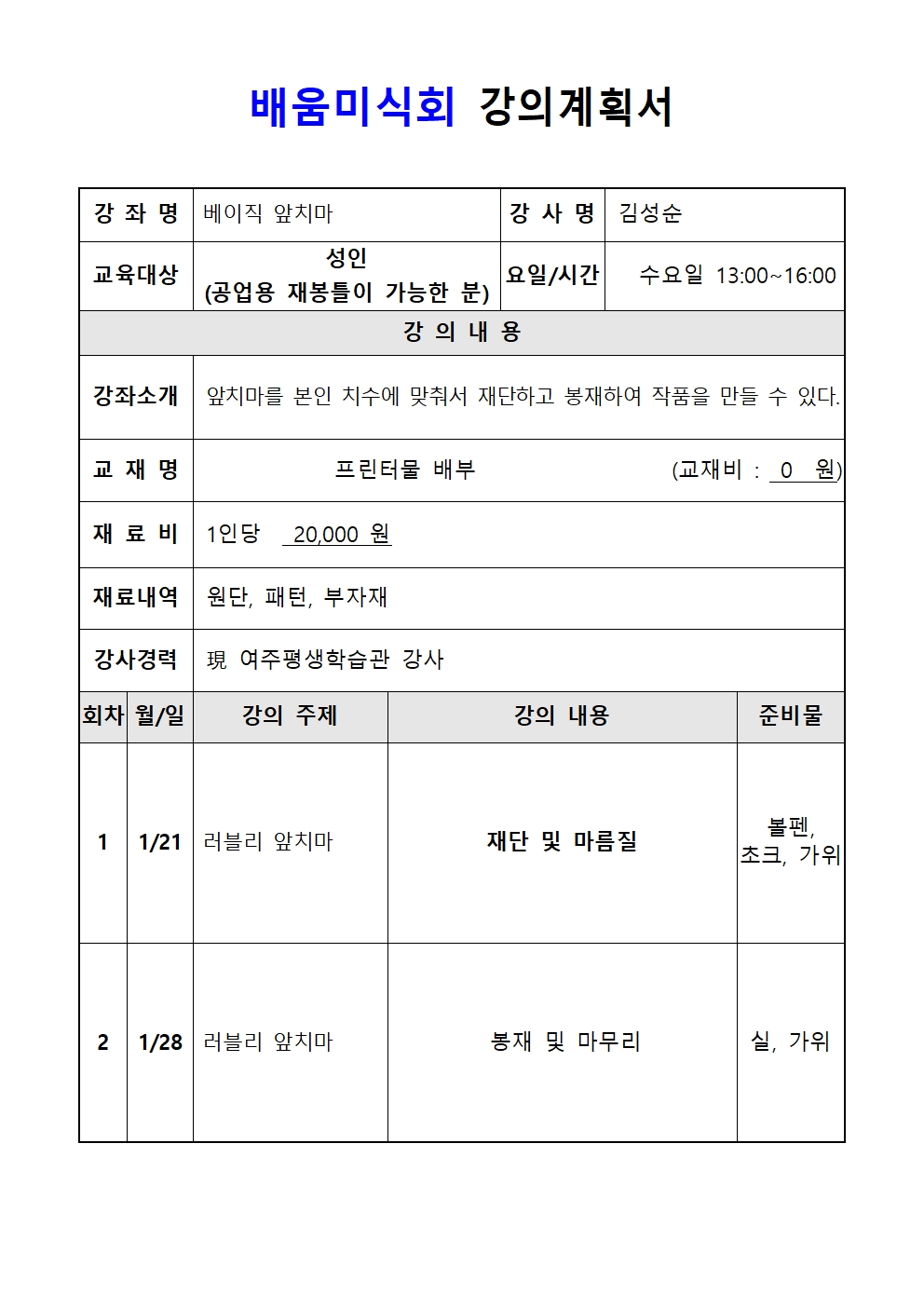 경기 여주시 신륵사길 6-6 (천송동, 평생학습센터) 양재교실(사무동 3층)