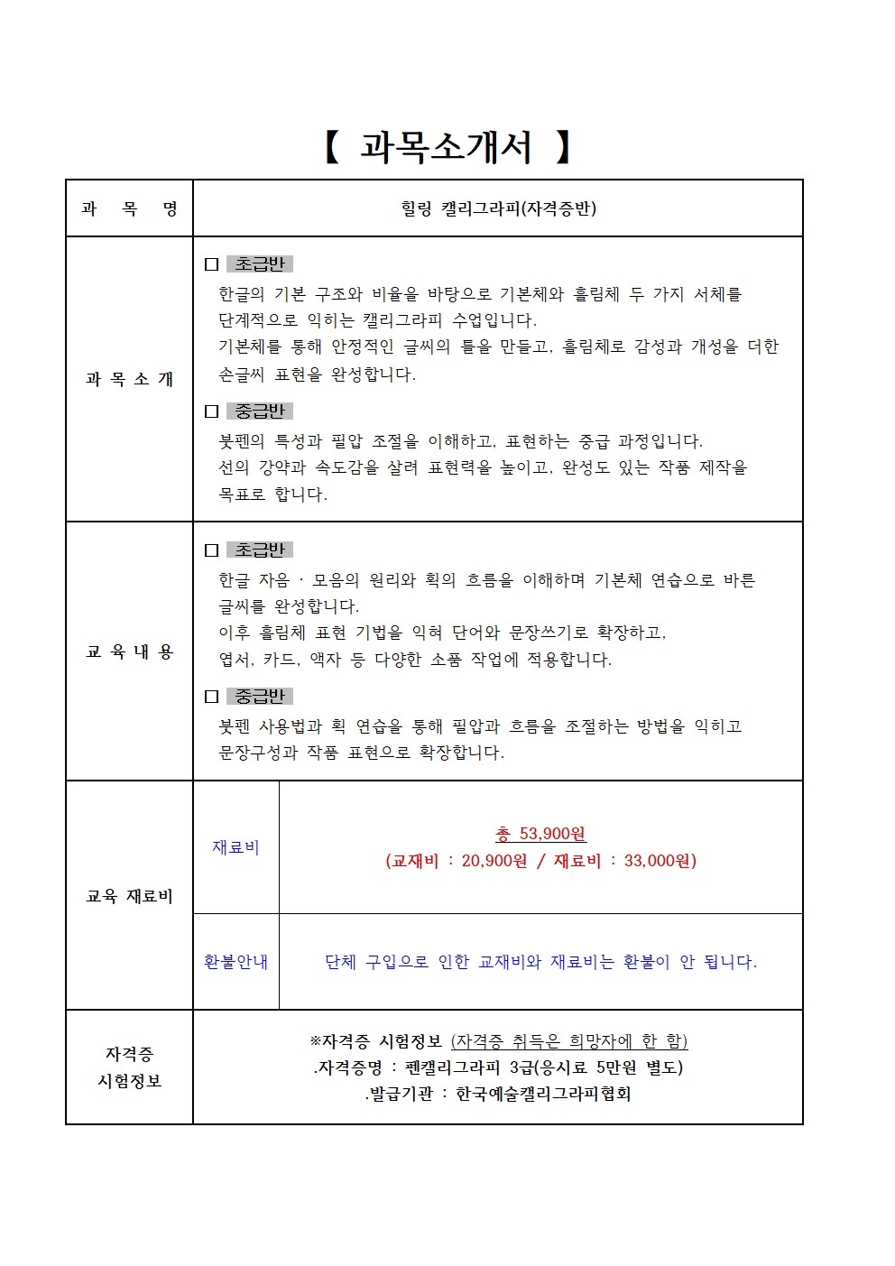정규프로그램 2026년 상반기 정규프로그램 힐링 캘리그라피(자격증반)