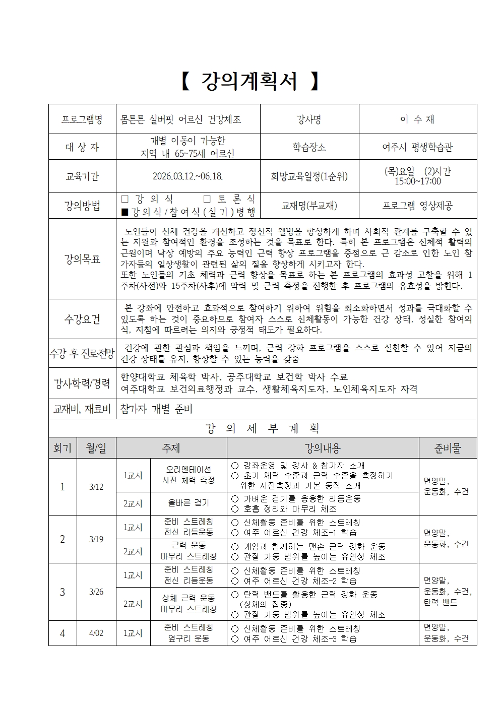 | 교육대상 | 어르신 |