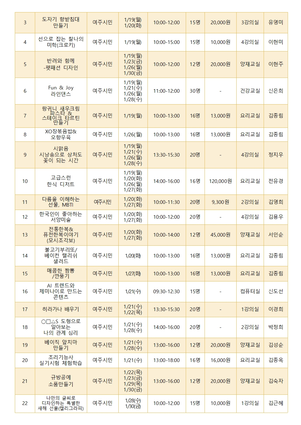 「2026년 여주시평생학습관 정규프로그램 강사 공개채용 및 프로그램 개발 공모」 2차 면접심사 결과 최종 선정 프로그램 공고